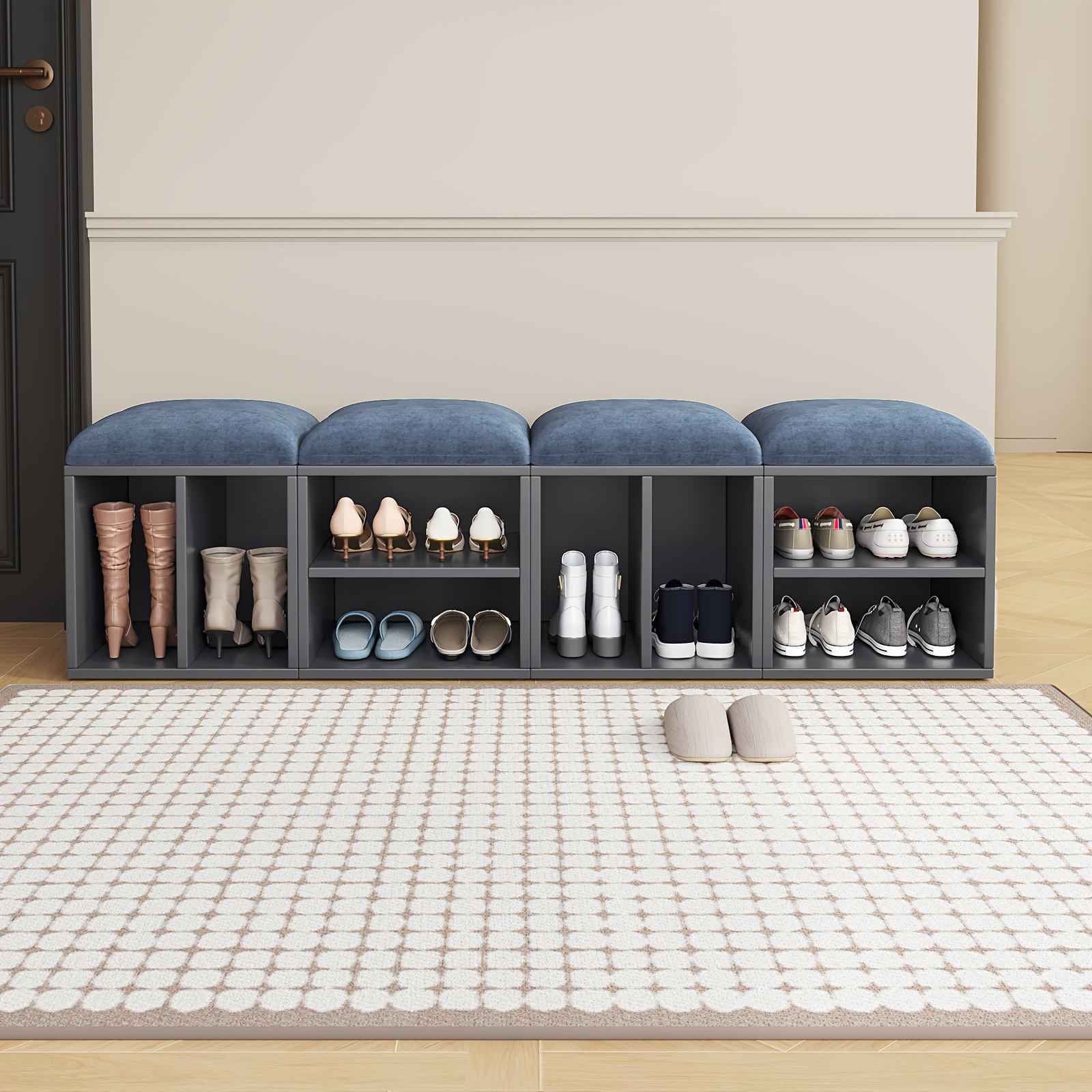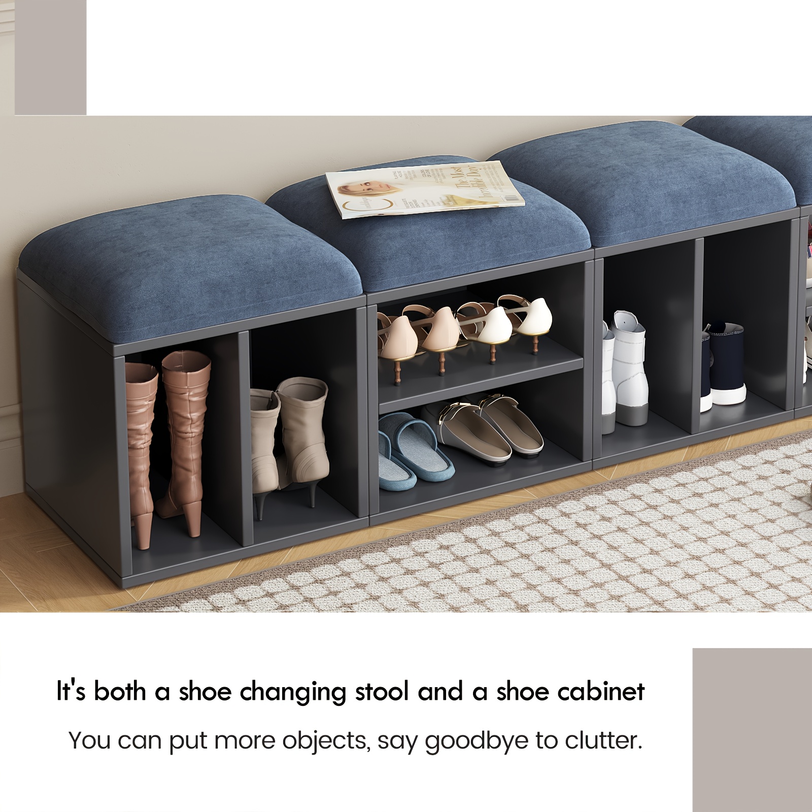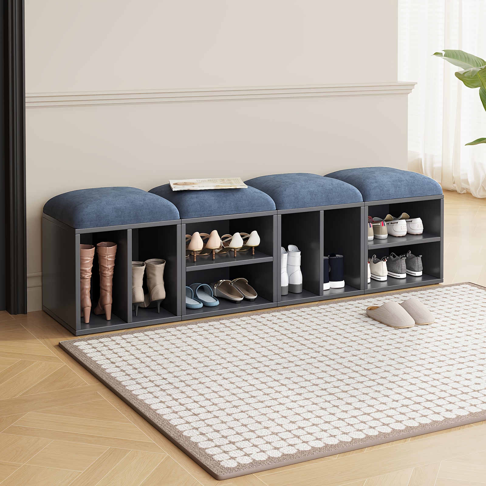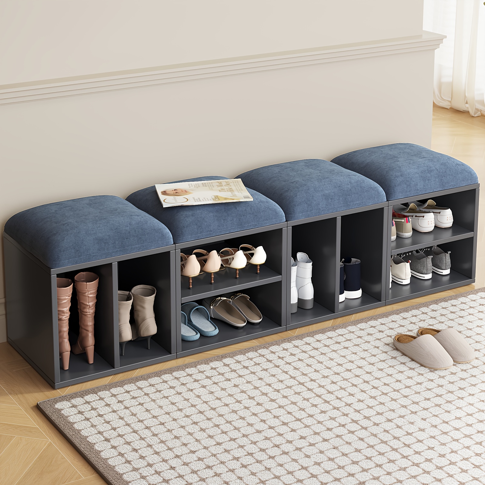 2\u002F4-Pack GUYII Step Stool with Padded Seat & Storage - Contemporary Footstool\u002FShoe Bench Suitable for Living Room, Bedroom, Entryway - Sturdy MDF\u002FFiberboard Stool with Soft Covering, Space-Saving, Ideal for s & (Cost per Unit Goes if)